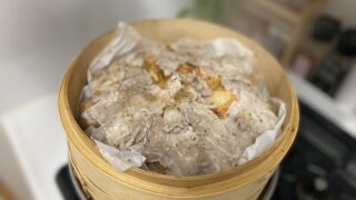 厚揚げ、白菜、キムチ、豚バラを重ねて蒸すだけの簡単レシピ。せいろを使えば放置で完成。チーズをプラスしたアレンジもおすすめの時短ごはんです。