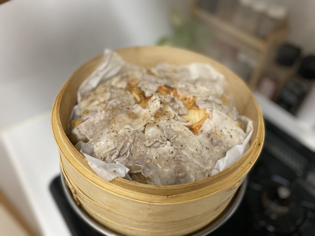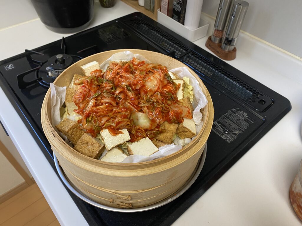 厚揚げと白菜のキムチ蒸し|せいろで簡単・重ねるだけの時短レシピ