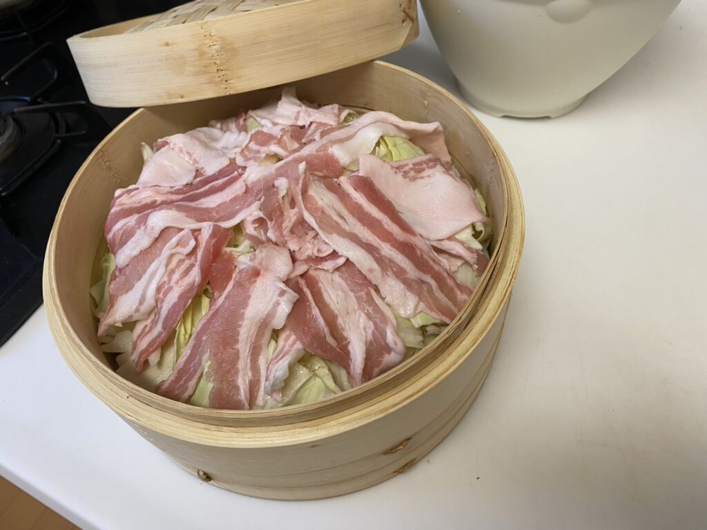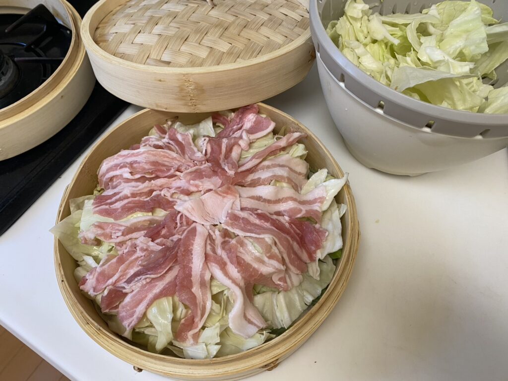 キャベツ×豚バラをせいろに詰めて、夜ごはんの主役に